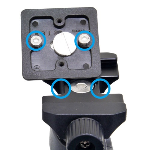 ・シュープレート裏面には脱落防止ネジがあります。取付つまみを緩めシューがスライドした際、ベース側のくぼみにこのネジがひっかかることで、脱落することを防ぎます(ネジは外すこともできます)。