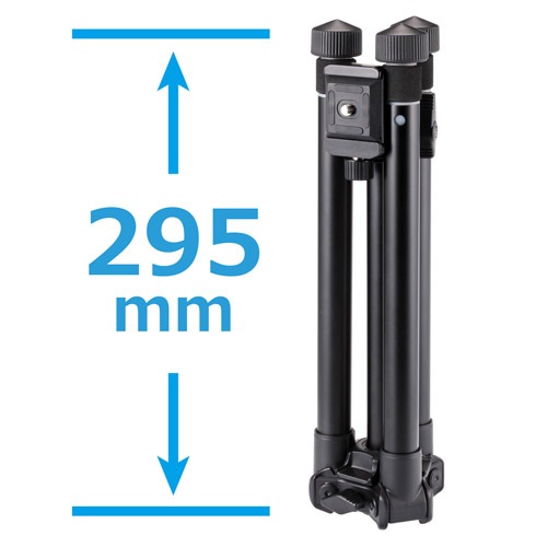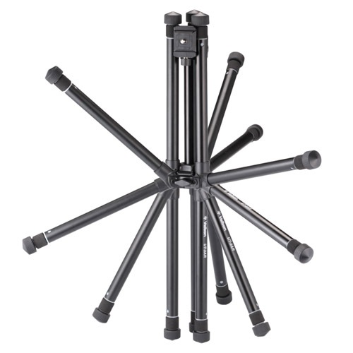 ・脚を180度反転して折りたたみ、専用の自由雲台を脚の間に収納することで、従来の三脚ではありえなかった小型高性能を実現。