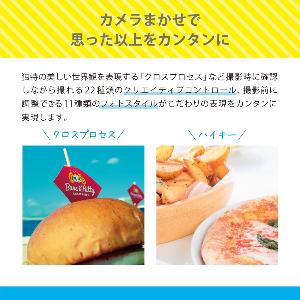 また、高画質Vlog(※3)撮影も可能な4K30p記録、効果演出で映像表現の幅を広げるスロー&クイック、手持ち撮影時の手ブレをしっかり抑える5軸ハイブリッド手ブレ補正機能など、充実の動画性能も搭載しています。