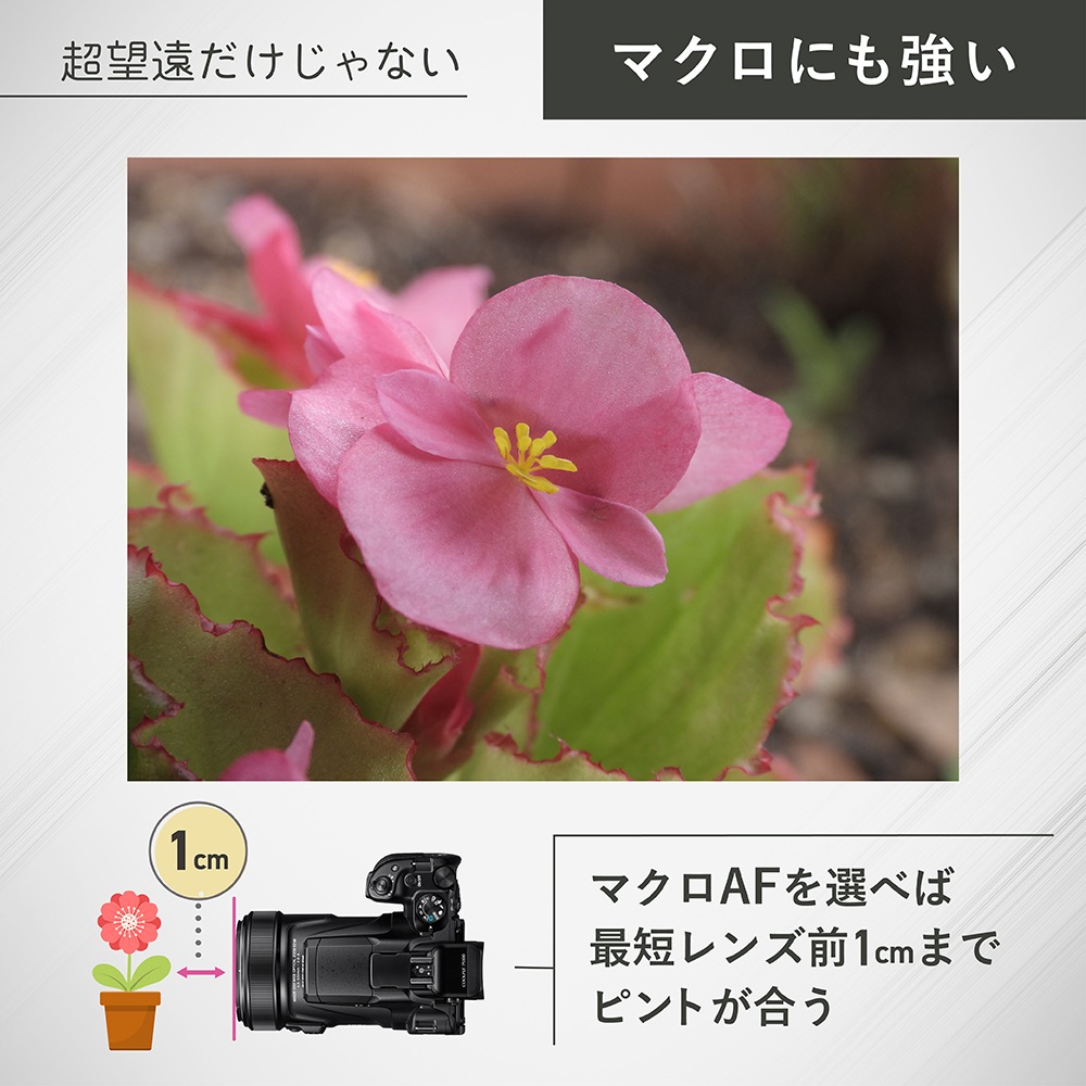 さらに、被写体に約1cm※3まで近づいてピントを合わせられる「マクロAF」で、花や昆虫のディテールまで鮮明に撮影できます。