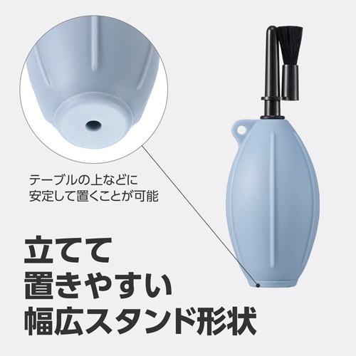 ブロアーの底部は、テーブルの上などに立てて置きやすい幅広のスタンド形状です。横に倒れた状態でも、表面の立体ラインが転がりを防ぎます。