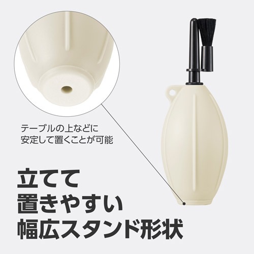 ブロアーの底部は、テーブルの上などに立てて置きやすい幅広のスタンド形状です。横に倒れた状態でも、表面の立体ラインが転がりを防ぎます。