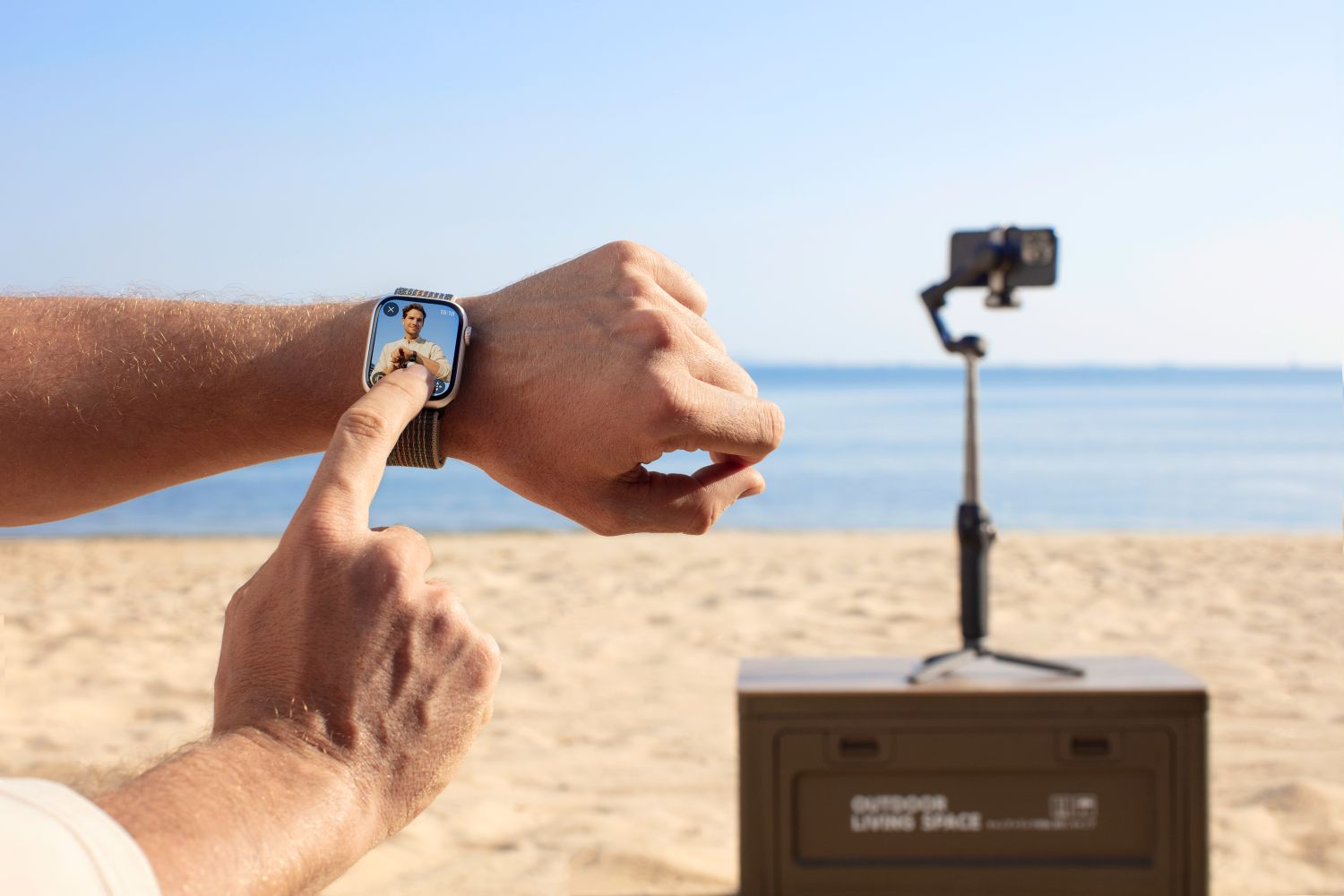 内蔵のセルフィースティックや腕時計での遠隔操作を使うと、セルフィーや集合写真を様々な角度から手軽に撮影できます。シンプルな操作で、1フレームに人物と風景を収められます。
