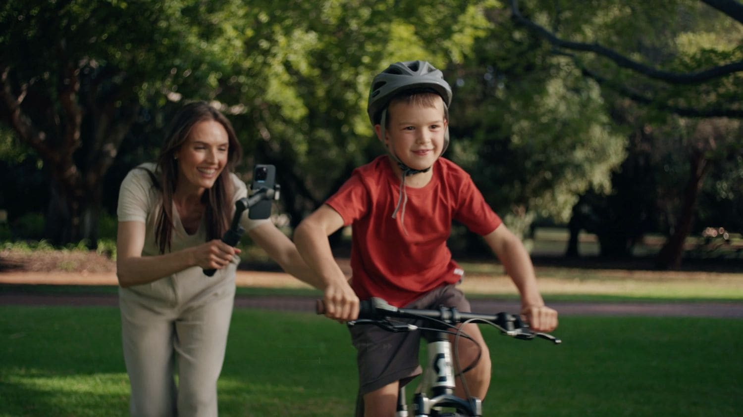 標準グリップでローアングル撮影をサポートします。DJI OM多機能モジュールを使用すると、画面が見えないときでも被写体を自動でフォローし、子供やペットをユニークな角度から撮影できます。