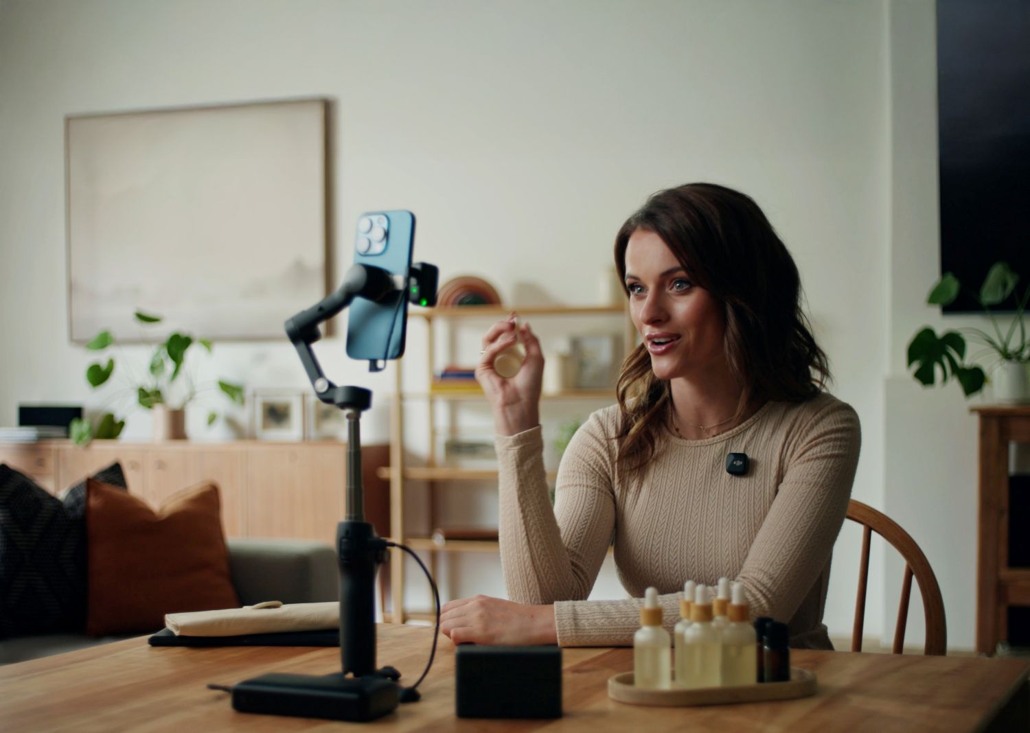 内蔵の三脚が安定性を確保し、多機能モジュールが被写体トラッキングをネイティブまたはサードパーティのカメラアプリで可能にします。ジンバルはスマートフォンを充電し、安心してライブ配信ができます。